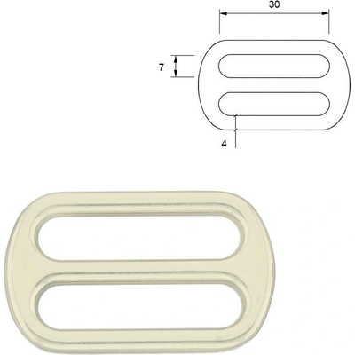 Posunovač na popruhy šíře 38 mm. Vnitřní rozměry: 17 x 38 mm. Vnější rozměry: 21 x 44 mm. Tloušťka: 2,8 mm. Materiál: kov. Hmotnost: 6 g. Kovový posunovač na popruhy...