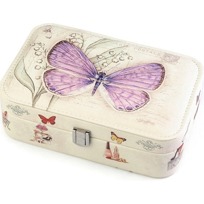 Šperkovnice se zrcátkem by neměla chybět v žádné dámské výbavě. Elegantní provedení z eko kůže s potiskem motýlů jako ze starého atlasu nadchne každou ženu. Šperkovnice působí...