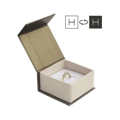 Hnědobéžová dárková krabička na prsten s oboustranným vnitřním polštářkem černé a bílé barvy Krabička jmá magnetický uzávěr a oboustranný polštářek...