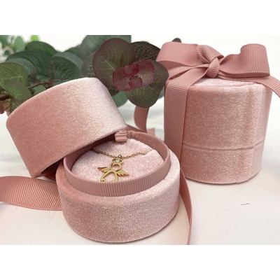 Luxusní růžová sametová krabička s mašlí je vhodná pro dárkové zabalení řetízku. Rozměr krabičky je 60x60x55 mm.