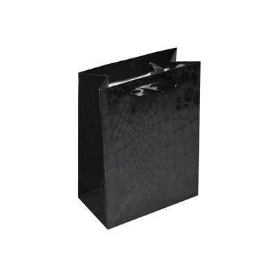 Větší papírová dárková taška černá Povrch tašky je zdoben hadím dekorem