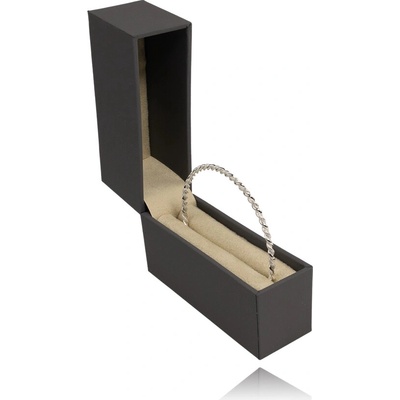 Elegantní šedá krabička pro pevný náramek má matný, hladký povrch a čisté linie. Vnitřek vyplňuje měkký krémový polštářek se středovým zářezem, který fixuje šperk a chrání ho...