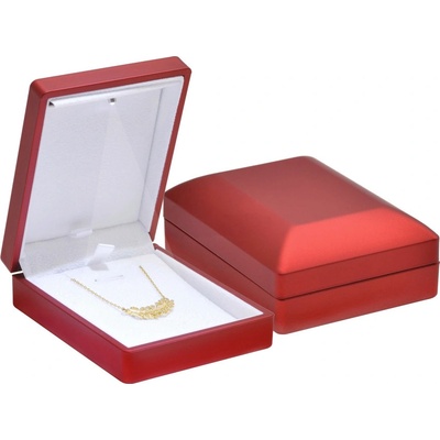 Dárková krabička s LED osvětlením na náhrdelník nebo přívěsek vyrobená z pevného plastu s metalickým povrchem červené barvy. Při otevření krabičky se rozsvítí světlo umístěné v...