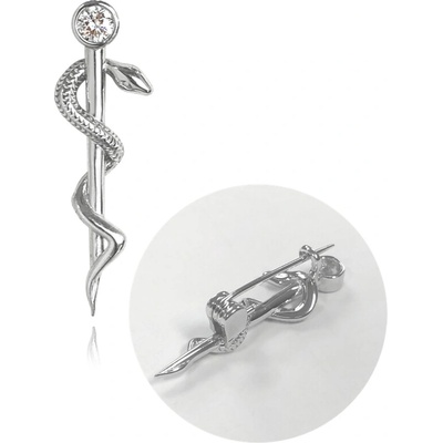 Aeskulapova hůl, znak lékařů brož vyrobena za stříbra, zdobena jedním zirkonem v horní části. B-65014, 65776