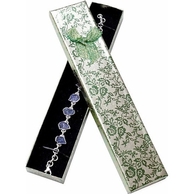 Elegantní papírová dárková krabička zlatozelená s látkovou mašlí a s potiskem na náramky nebo na hodinky. Krabička je s černým semišem. Rozměry: cca 21,5 x 4,3 x 2,4 cm....