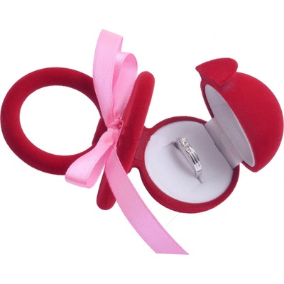 - Dárková krabička ve tvaru dudlíku. - Rozměry jsou 110 x 65 mm. - Materiál samet. - Krabička je vhodná především pro prsten nebo náušnice.