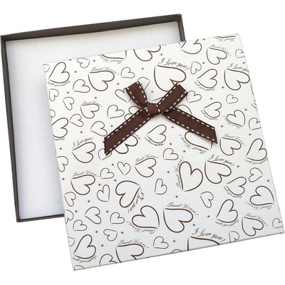 Dárková krabička na šperky se srdíčky na víčku. Krabička je vyrobena z tvrzeného papíru.