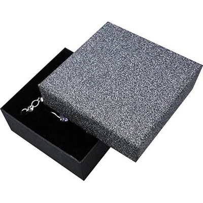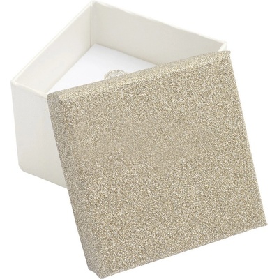 Papírová dárková krabička na šperky s polstrováním. Víko krabičky zdobí třpytivý povrch. Šperky na obrázcích nejsou součástí dárkové krabičky.