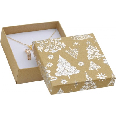 Vánoční papírová dárková krabička na soupravu šperků Béžová dárková krabička se stříbrným vánočním dekorem KR0368-SI