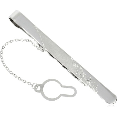 Stylová kravatová spona vyrobená ze stříbra, která doladí outfit každému muži. Spona je zdobená jemným matováním. B-53702, B-63721, 65956