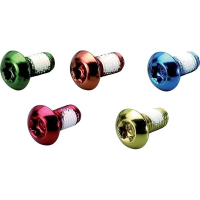 Šrouby Sting určené pro upevnění brzdového kotouče. Balení obsahuje 12 kusů šroubu. kód - 1339 - šrouby do kotoučů - Materiál: nerez - Rozměr: M5x10 T25 - barva: červená, modrá, stříbrná a zatá