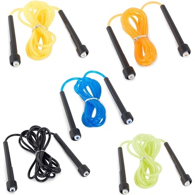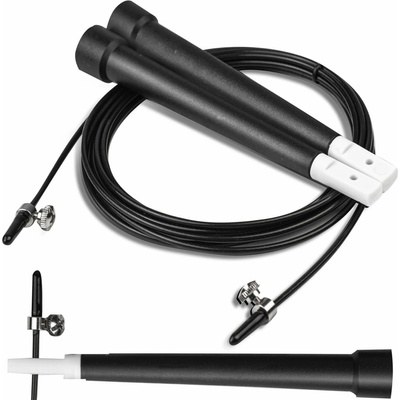 Ultra rychlé švihadlo se zesílenými rukojeťmi a otočnými ložisky. Ocelové lanko s gumovým krytím, jednoduše nastavitelná délka do 300 cm.