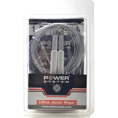 PowerSystem hliníkové švihadlo Ultra Jump Rope stříbrné Stříbrné hliníkové švihadlo pro kardio trénink Nastavitelné švihadlo s ocelovým lanem obaleným plastem Polstrované...