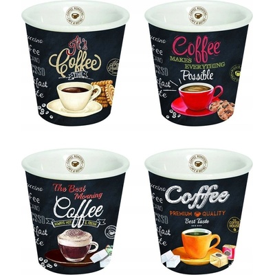 Porcelánové pohárky na kávu It´s Coffee Time jsou součástí kolekce italské značky Easy Life Dárková krabička obsahuje 4 hrnky s různými motivy. Objem hrnku je 80 ml.