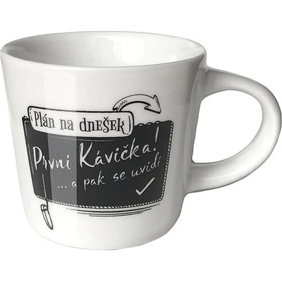 Pro vášnivé milovníky espressa je mini hrneček přímo stvořen. K dokonalosti tohoto jedinečného okamžiku vám už chybí jen stylový hrnek na kávu s textem "Plán na dnešek. První...