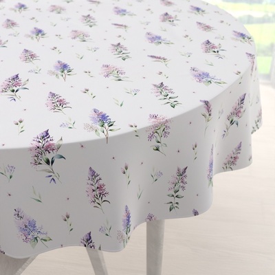 Teflonový kulatý ubrus na jídelní stůl se vzorem šeříků na bílém podkladu, vyrobený ze 100% polyesterové látky s vodoodpudivou a nešpinivou teflonovou úpravou. Je stálobarevný,...