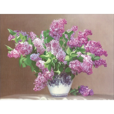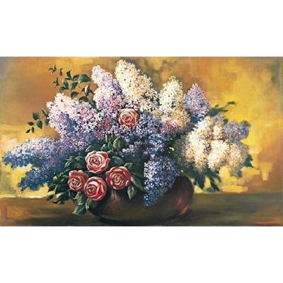 Obrazová reprodukce vytištěná na tvrdý papír o hmotnosti 270 gramů na metr čtverečný s povrchem imitujícím povrch plátna. Šeříky - 30 x 40 cm 477