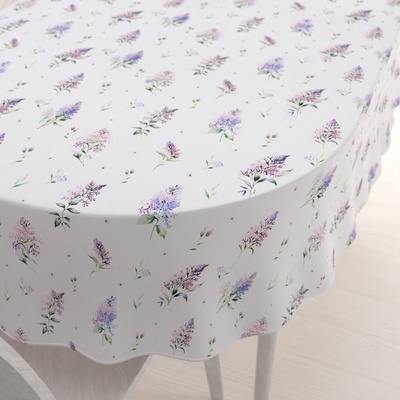 Teflonový oválný ubrus na jídelní stůl se vzorem šeříků na bílém podkladu, vyrobený ze 100% polyesterové látky s vodoodpudivou a nešpinivou teflonovou úpravou. Je stálobarevný,...