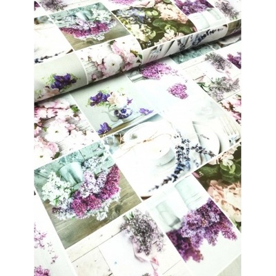 Teflonový čtvercový ubrus na jídelní stůl se vzorem šeříků na bílém podkladu, vyrobený ze 100% polyesterové látky s vodoodpudivou a nešpinivou teflonovou úpravou. Je...