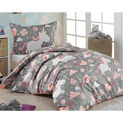 Povlečení se vzorem růžového jednorožce, obláčků a květů na šedém podkladu. Povlak na přikrývku i na polštář je stejný. Souprava je vyrobena ze 100% bavlny a obsahuje povlak na...