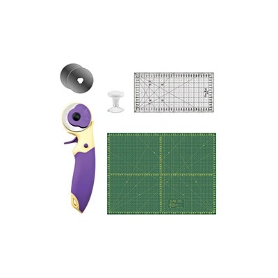 Sada řezacích nástrojů - řezací kolečko s náhradními čepelemi, samosvorná řezací podložka, skalpel s dalšími čepelemi, kolíky a protiskluzové samolepky. Sada...