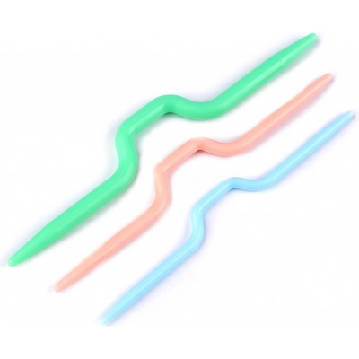Pomocné prohnuté jehlice využijete pro pletení copánkového vzoru. Jsou vyrobené z plastu, velmi lehké a příjemné do ruky. V balení najdete tři průměry - 3 mm, 4 mm, 5...