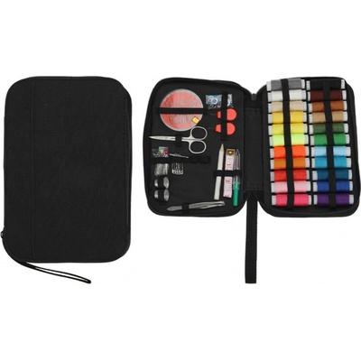 Sada na šití v pouzdře (sada 47 ks), velikost obalu 21x15 cm. Velmi praktická sada na šití, kterou bychom mohli nazvat "krabičkou první pomoci" pro každého, kdo musí cokoliv...
