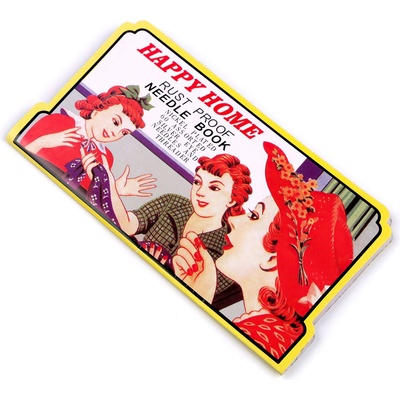 Sada krejčovských jehel v papírovém obalu z obrázkem tří žen. Souprava obsahuje šicí jehly 60 jehel velikosti od 34 mm do 52 mm a nezbytný navlékač nití. Jehly jsou vyrobeny z...
