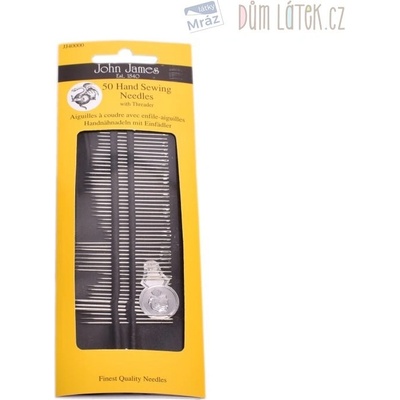 Univerzální ruční jehly s navlékačem. Balení obsahuje 50 ks jehel různých velikostí.