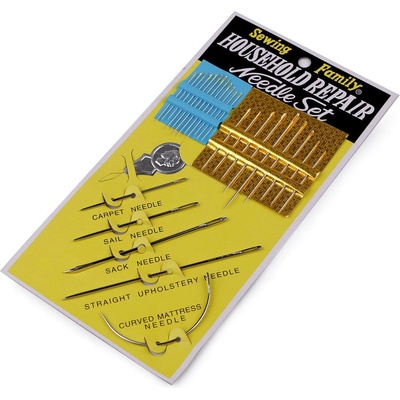 Sada jehel obsahuje 12 malých a 9 větších jehel se zlatým ouškem. Dále zde najdete jehlu na koberce, jehlu na plachtovinu, jehlu na pytlovinu, rovnou čalounickou jehlu a...
