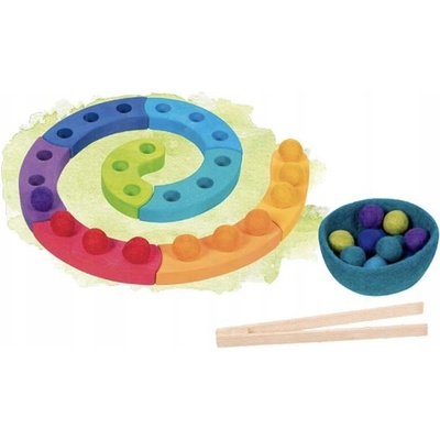 Motorická hra: Třídění bavlněných míčků – Spirála Motorická hra vyrobená z vysoce kvalitního dřeva, určená k rozvoji jemné motoriky, koordinace a základů práce s barvami. Popis...