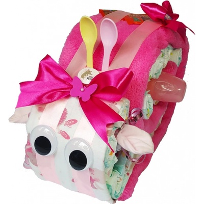Potěšte nastávající maminku a tatínka tímto opravdu originálním plenkovým dortem ve tvaru šneka pro právě narozenou holčičku. S tímto plenkovým dortem určitě zazáříte. Luxusní...