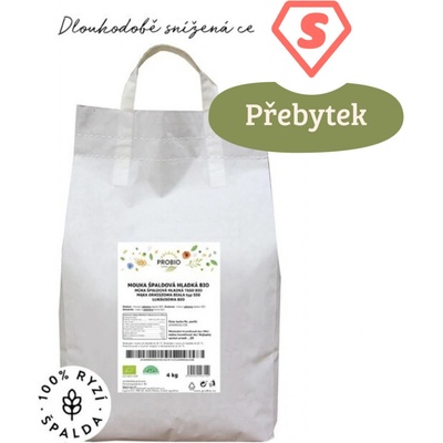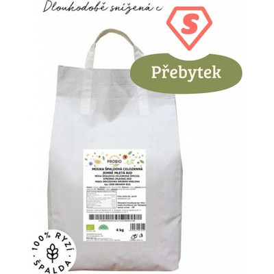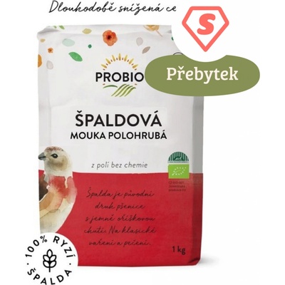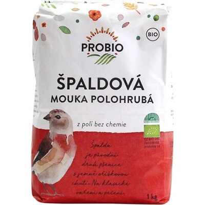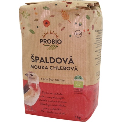PROBIO Špaldová mouka bílá polohrubá BIO 1000 g. Složení: Špaldová mouka polohrubá* 100% *CZ-BIO-001 produkt ekologického zemědělství Skladování: Skladujte v suchu a temnu. ...
