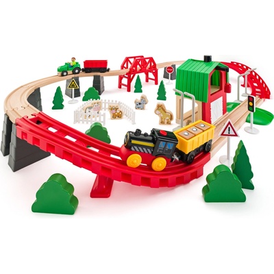 S touto dřevěnou železniční soupravou ožije život na kolejích. Robustní dřevěné koleje a výhybky umožňují vagonům bezpečně dojet do cíle. Krajinu doplňují stromy a různé dřevěné budovy, mosty, postavičky, lokomotivy a vagóny. Hlavní vlastnosti: Materiál: dřevoObsahuje...