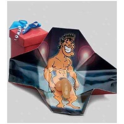 Papírová krabička s překvapením. Po sundání víčka se krabička rozloží a na Vás vykoukne nakleslený fešák s přilepeným gelovým penisem. Ideální žertovný dárek, pro ženu. Rozměr...
