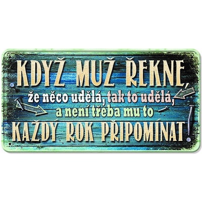 Vtipná plechová cedulka s textem "Když muž řekne..." je jedinečný doplněk každého interiéru. Materiál: smaltovaný plech Rozměr: 23 x 12 x 0,3 cm