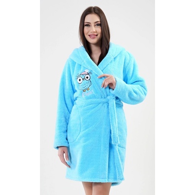 Dámský župan krátký s kapucí Sova. Dámský župan s kapucí, páskem k převázání a kapsami vás zahřeje při cestě do postele, i po koupeli. Na prsou je obrázek roztomilé sovy....
