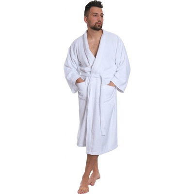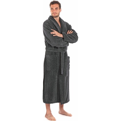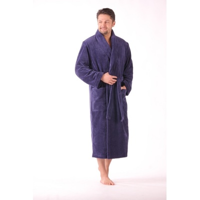 Pánský župan v kimono střihu z kolekce Oxford má krásnou oceánově modrou barvu a klasický delší střih. Díky žákárovým proužkům po celé délce působí velmi elegantně a decentně....