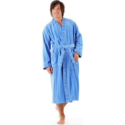 Oxford 1212 proužek pánské bavlněné kimono dlouhý župan kimono modrý proužek 5003