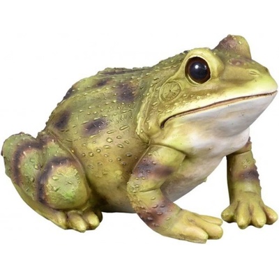 Zahradní dekorace v podobě žáby. Je vyrobena z polyresinu, který figurce dodává pevnost a také odolnost vůči povětrnostním vlivům.