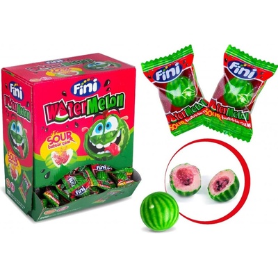 FINI Watermelon sour bubble gum 900g FINI kyselá žvýkačka s příchutí vodního melounu 200ks/4,5g Cena je za 1balení, které obsahuje 200kusů samostatně balených...