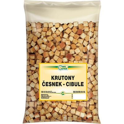 Krutony česnek - cibule Kód: 2007 - Použití: Smažené pšeničné krutony s příchutí cibule a česneku, přísada do polévek a salátů. - Složení: Kostky z pečiva (pšeničná...