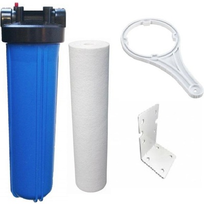 Filtrační nádoba 20" Big Blue s držákem, klíčem a s filtrační vložkou Big Blue 20" pro odstranění mechanických nečistot, sedimentu, písku, kalu, jílu apod. Kompletní...