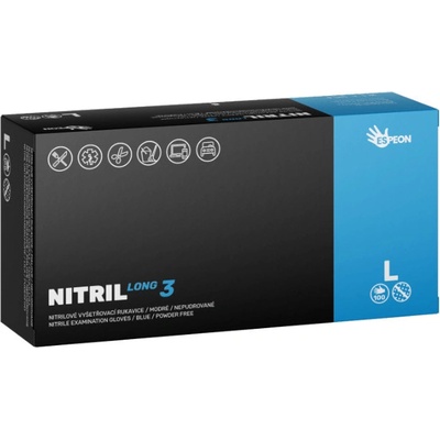 Nitrilové rukavice Espeon Nitril Long3 Powder Free Examination Gloves jsou vyrobeny ze 100% syntetického nitrilu. Rukavice LONG 3 jsou o 6 cm delší než ostatní naše jednorázové...