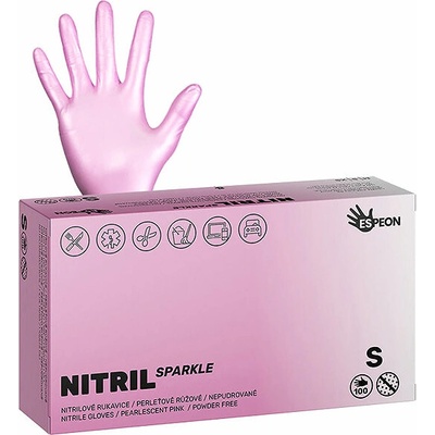 Espeon Nitril Sparkle Powder Free Gloves Pearlscent Pink 100 ks