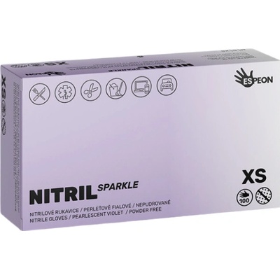 Nitrilové rukavice Espeon Nitril Sparkle Powder Free Gloves jsou vyrobeny ze 100% syntetického nitrilu. Rukavice neobsahují pudr ani latex a nezpůsobují alergické reakce. Velmi...