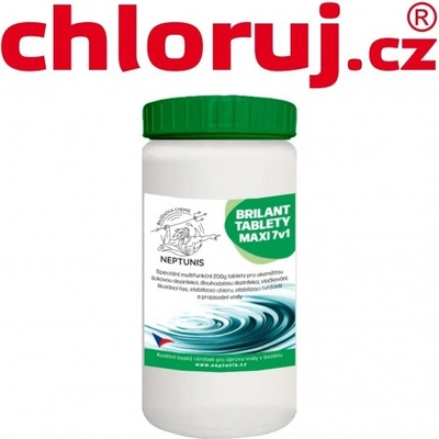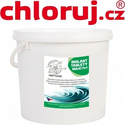 Špičkové speciální multifunkční 200 g tablety 7v1 - SEDMIKOMBINACE, zajišťující okamžitou šokovou dezinfekci, dlouhodobou dezinfekci, vločkování, likvidaci řas, stabilizaci...
