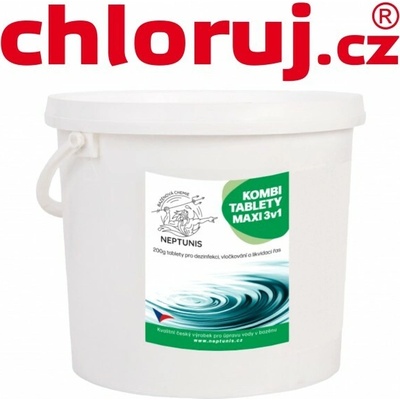 Kombi tablety maxi 200 g tablety s obsahem 80 % aktivního chloru, zajišťující desinfekci, vyvločkování nečistot při zakalení vody a likvidaci řas, Dávkování: Pro 20-30 m3...