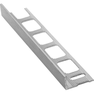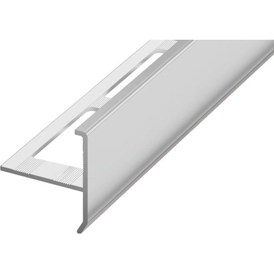 Schodová hrana step „T“ chrání a zakrývá spoj mezi vertikální a horizontální dlaždicí schodu. Může se také použít převráceně, a proto je vhodná pro dvě různé tloušťky dlaždic....