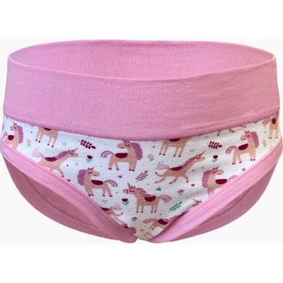 Dětské bavlněné kalhotky Amelia. Dětské kalhotky klasického střihu jsou pohodlné a slušivé, zdobí je obrázek jednorožce. Obzvláště oceníte materiálové složení - 95% bavlna a 5%...